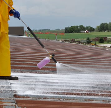 A complete waterproofing system for metal roofs that inhibits rust, stops leaks and provides an energy-efficient, long-lasting and attractive finish coat for years of service. All seams are strengthened with fabric reinforcement embedded into our acrylic elastomeric roof coating. Exposed fasteners are sealed from the elements with premium caulking. The entire roof surface is protected with one of Conklin's industry-leading roof coatings. The system is an effective method for preserving an existing metal roof without the need for costly metal repair or replacement.